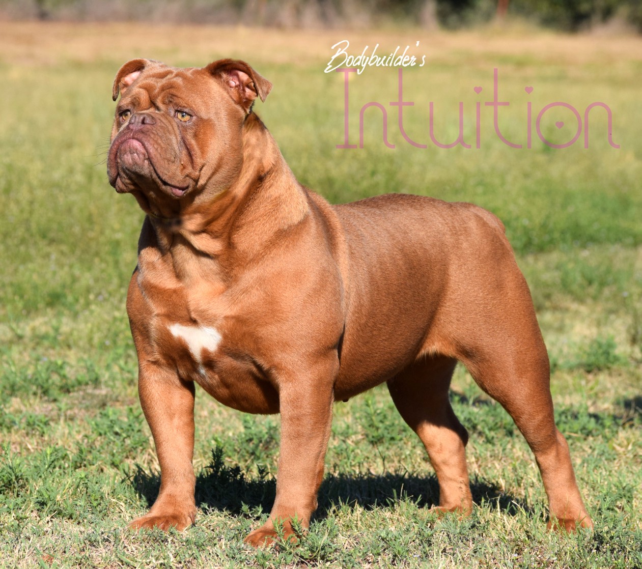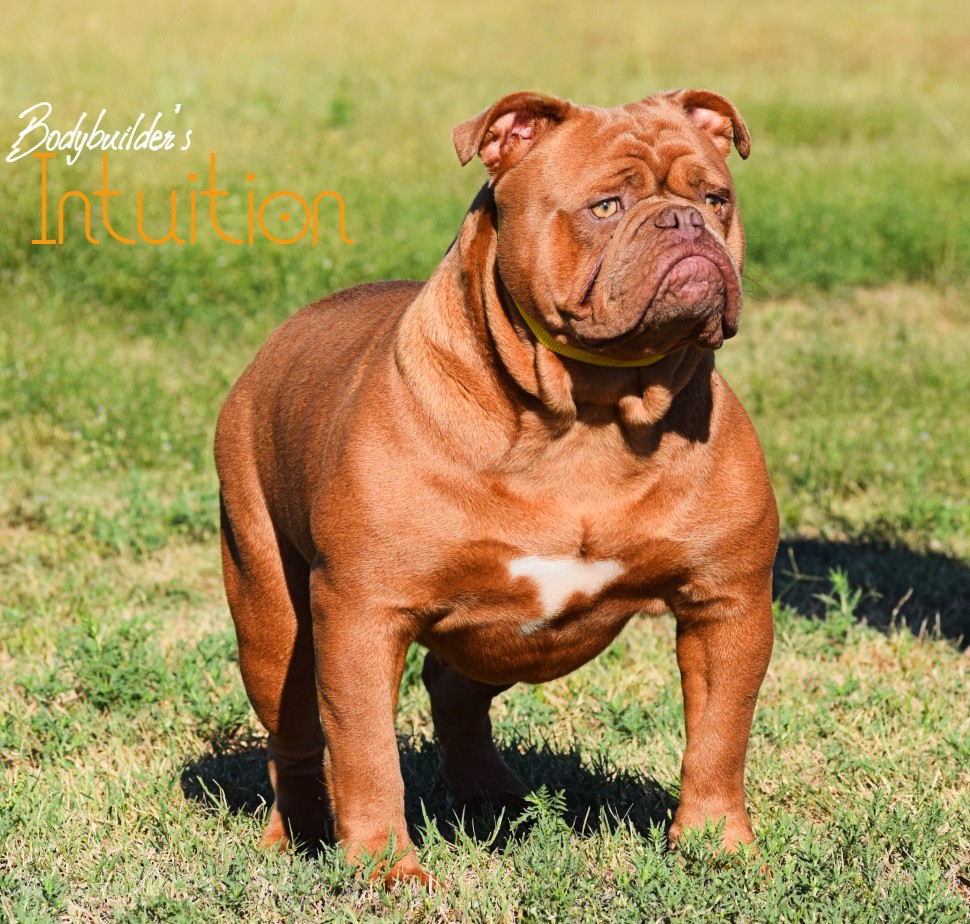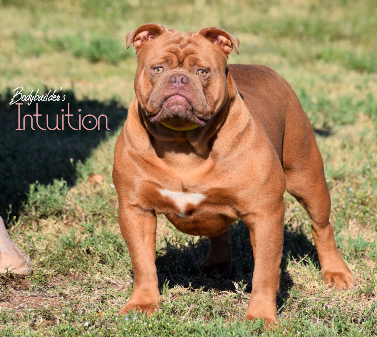 Intuition is one of our “special” creations. She is a littermate to our boy Retro. When we conceived the idea for Intuition and Retro we had some things in mind. We wanted to add some elements that we felt were either lacking or would help us continue to create a better OEB. So we paired our best girl (Audi) with an outside stud named “Heavy.” Heavy comes from some very bloodlines that have a lot of American Bulldog genetics. We love his confirmation and head type and size. To say the pairing of him with Audi was a success is a major understatement!